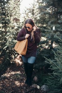 Ashley Zeal from Two Peas in a Prada wears the Hobo Kingston Tote available from Zappos. Shot at Grandma Buddy's Christmas Tree Farm.