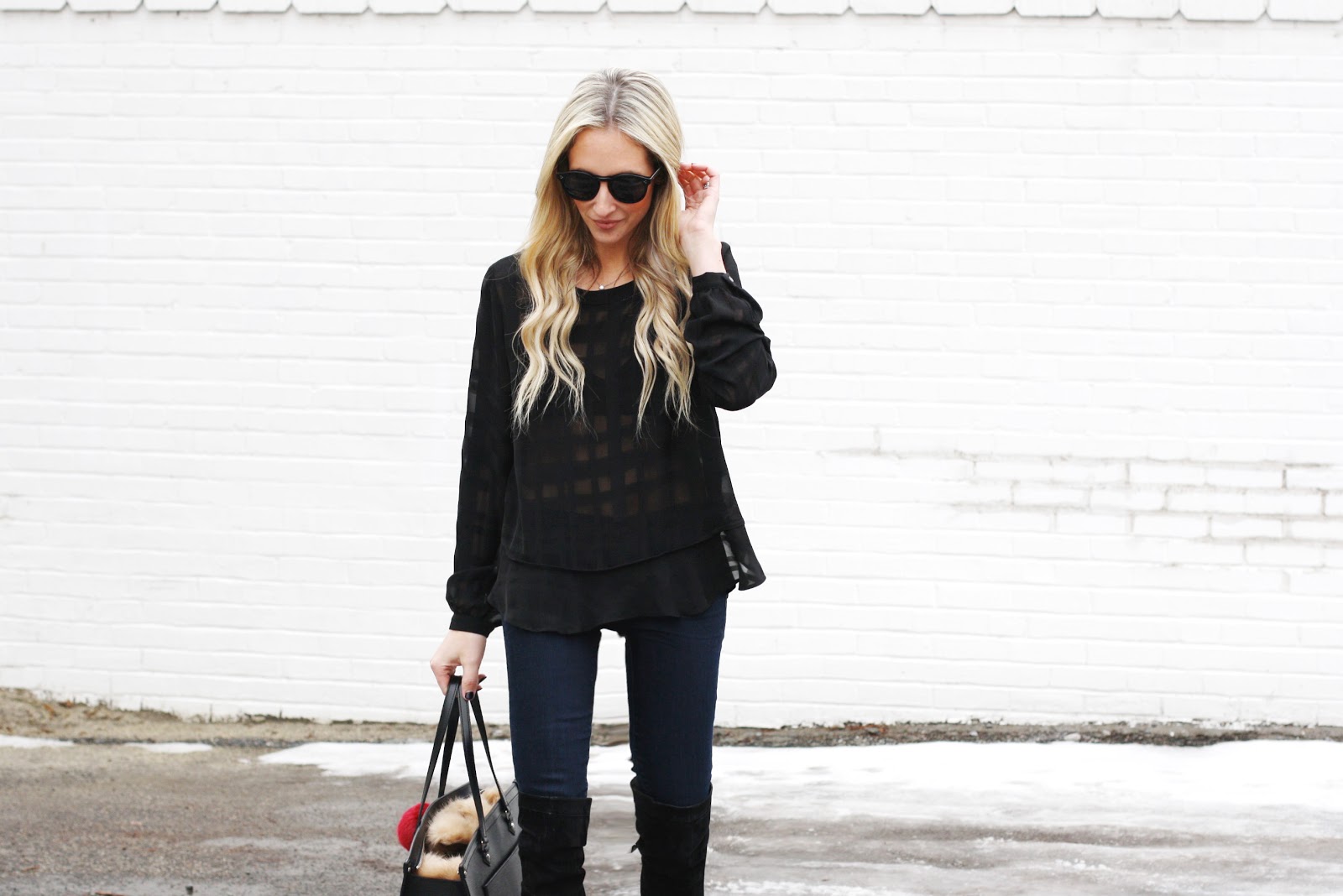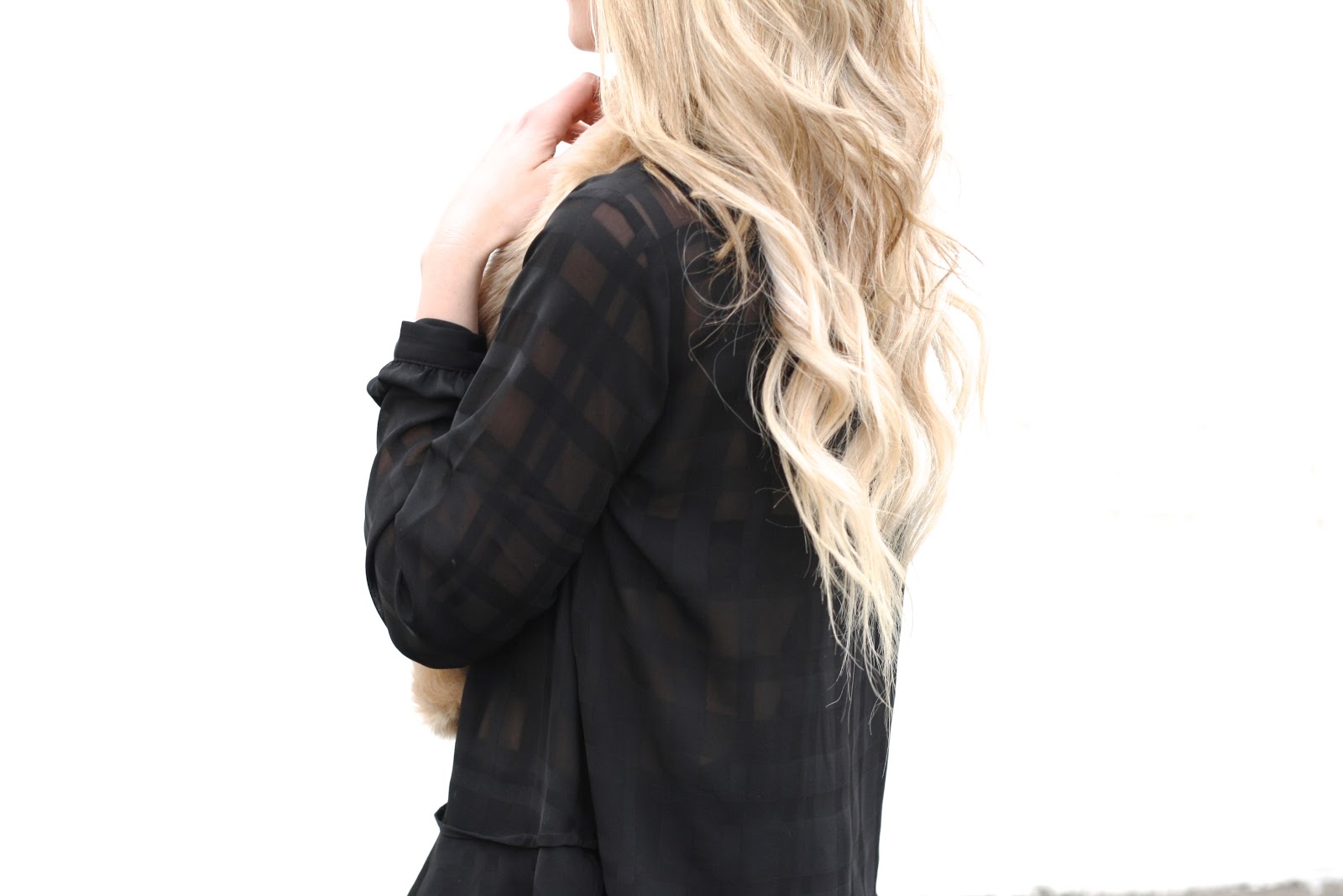 Literally that is all I could think as I laid eyes on this beauty over the weekend. I fell in love with it immediately. The ruffled hemline was what first caught my eye. Many of you know, I’m an absolute sucker for feminine details. Ruffles, scalloped hemlines, bows… they’re just a few of my weaknesses. So like I said, the ruffles were what drew me in… but when I tried it on, the subtly sheer fabric and the geometric plaid pattern were what sold me.