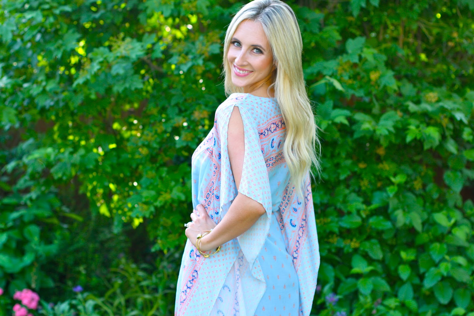 One other aspect of this dress that really makes it worth the investment is that you can entirely change your look by switching out your shoes. I wore it with nude pumps and a blush colored clutch in Denver, but here I’ve updated the look with scalloped, cobalt sandals. Depending on what look you’re going for, this dress makes it easy to mix and match accessories — and that makes me one happy lady.