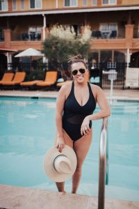 Ashley Zeal from Two Peas in a Prada shares what's in her beach bag, including: sunscreen, lip balm, sunnies and sun hats! She is wearing Bleu by Rod Beattie.